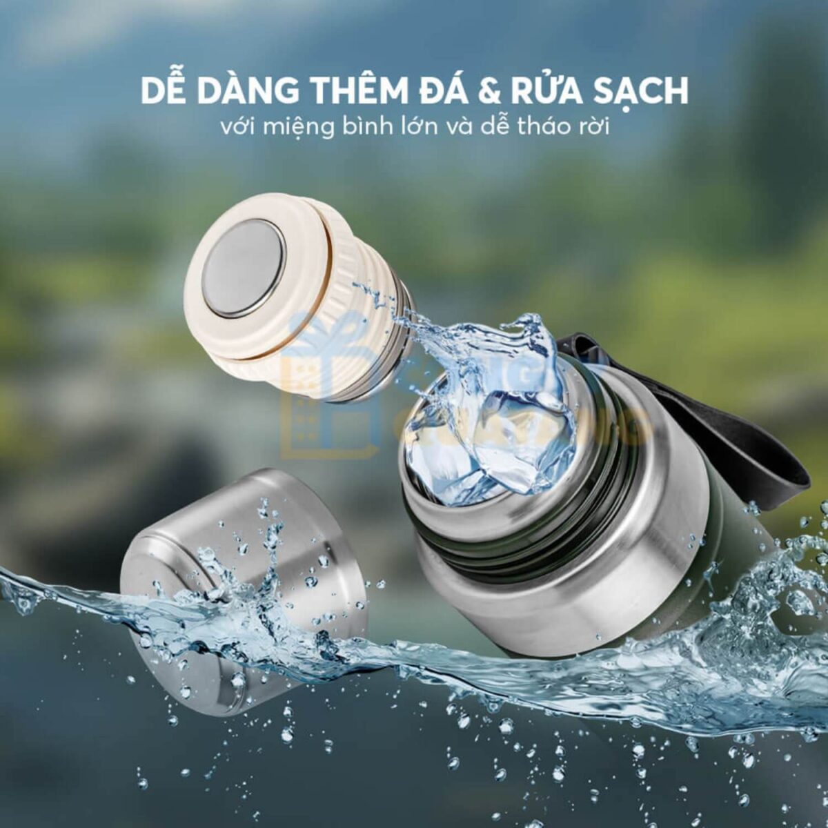 Bình được sản xuất từ inox 316 cao cấp, an toàn tuyệt đối cho sức khỏe, chống ăn mòn và chịu va đập tốt. Công nghệ hút chân không hiện đại giúp bình giữ lạnh lên đến 30 giờ và giữ nóng đến 9 giờ, đáp ứng đa dạng nhu cầu sử dụng từ nước uống, trà, cà phê đến các loại đồ uống thể thao. Miệng bình rộng giúp dễ dàng thêm đá và vệ sinh nhanh chóng.