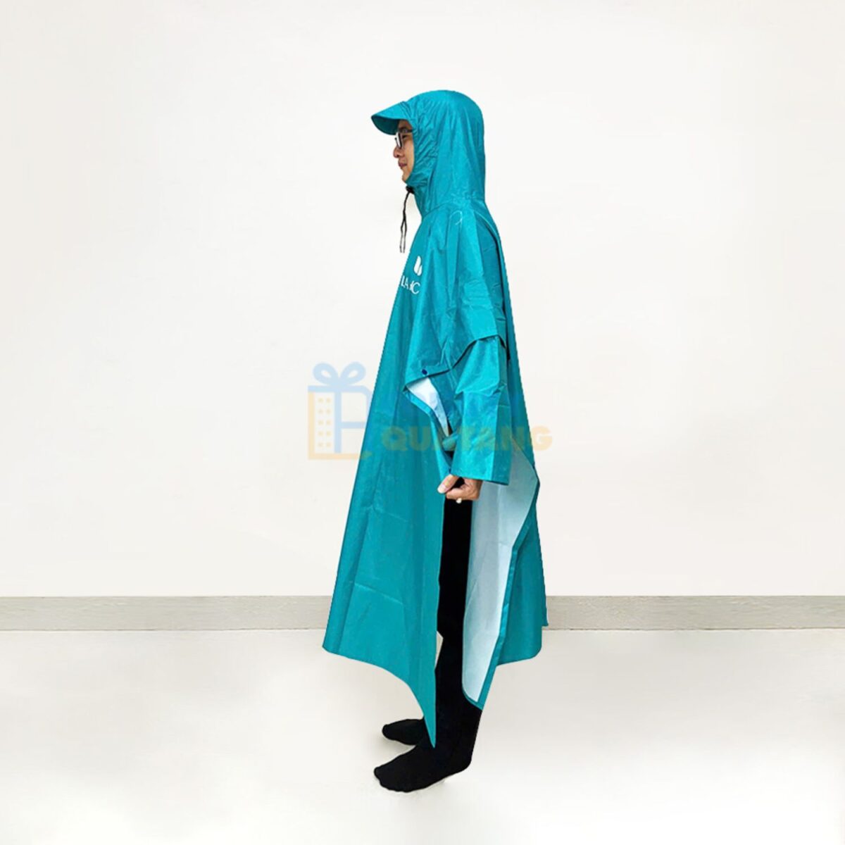 - Thiết kế cánh dơi rộng rãi: Bao phủ toàn thân và cả balo, túi xách phía sau, giúp bảo vệ người dùng tối đa khi di chuyển dưới mưa.