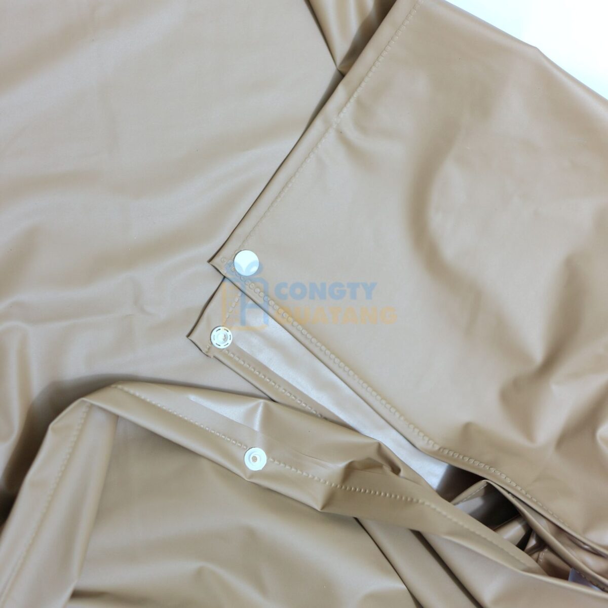 - Chất liệu chống thấm cao cấp: Sử dụng vải nhựa chất lượng, mềm mại, nhẹ và có khả năng chống thấm nước tuyệt đối, đảm bảo độ bền khi sử dụng lâu dài.