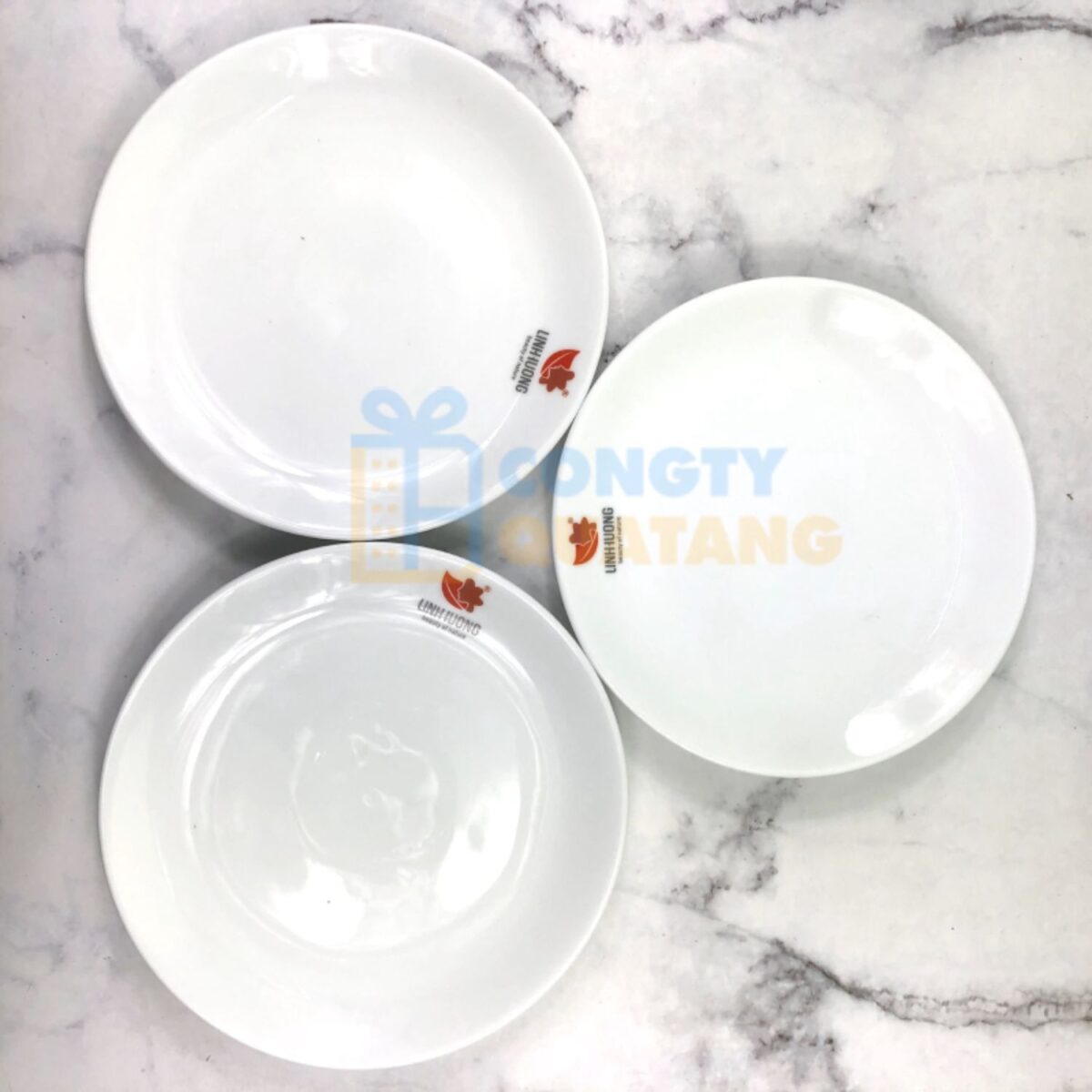 Các mẫu in ấn bát đĩa theo yêu cầu đều được chế tác từ sứ trắng cao cấp, bền, sáng bóng. Với thiết kế tinh tế, màu sắc trang nhã, kết hợp cùng logo được in ấn hoặc nung khéo léo – sản phẩm tạo nên một tổng thể sang trọng, phù hợp từ phòng họp đến bàn tiệc gia đình, nâng tầm đẳng cấp của doanh nghiệp bạn trong mắt người nhận.