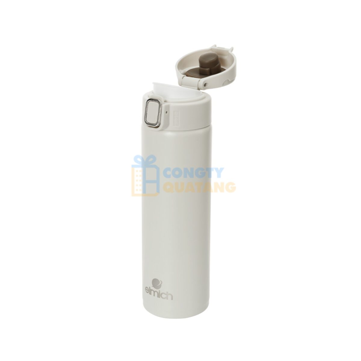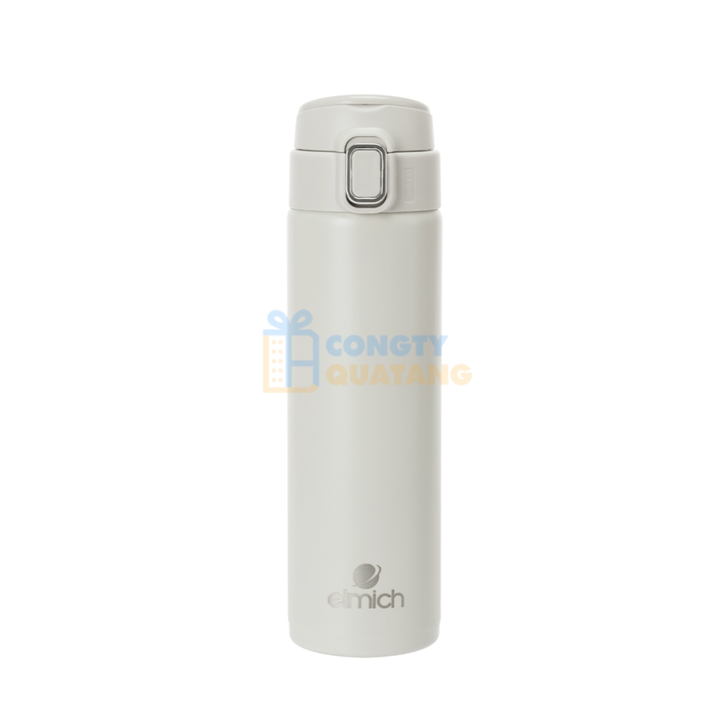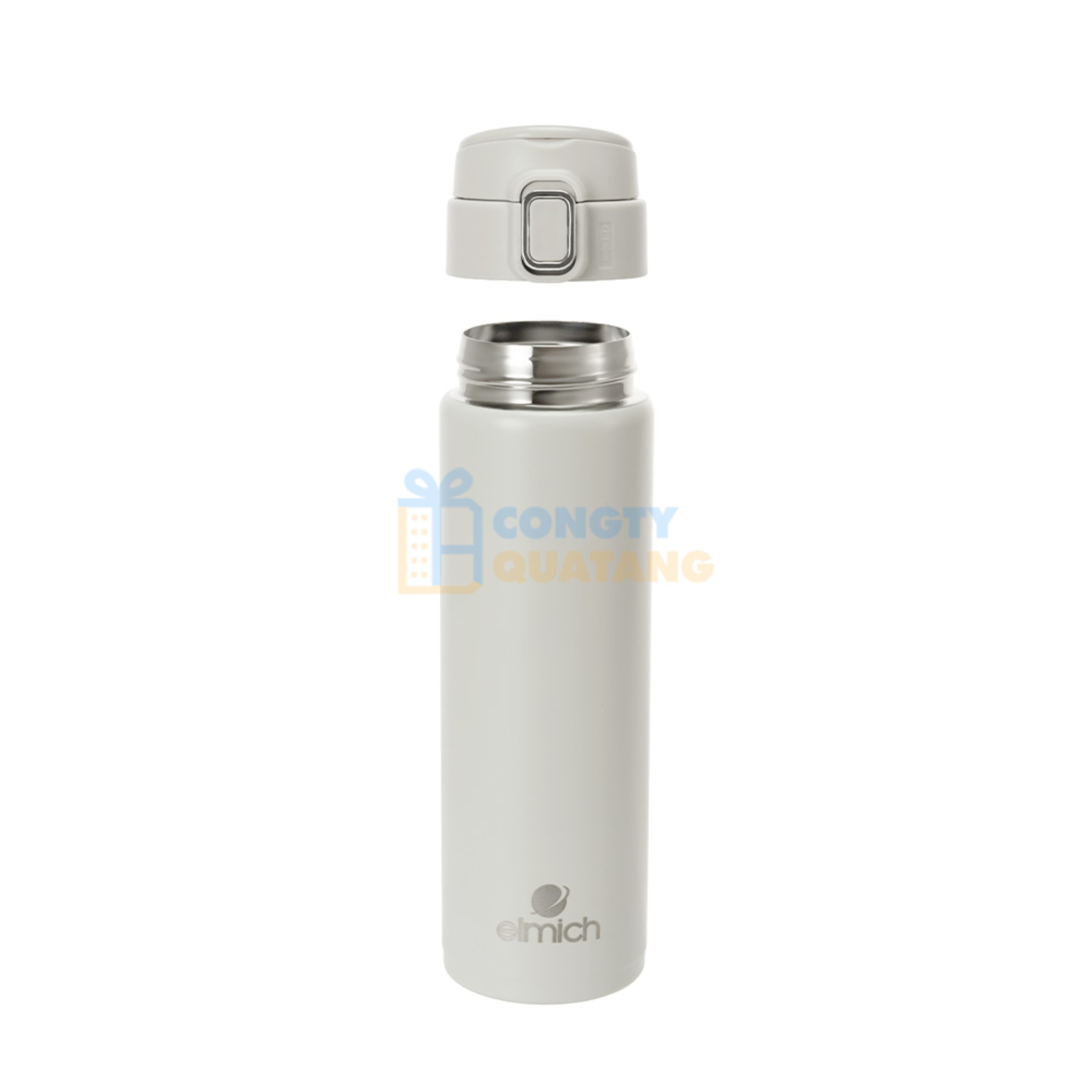 - Kiểu dáng tinh tế: Thân bình thon gọn với gam màu trắng trang nhã, kết hợp logo Elmich sang trọng, phù hợp cho nhiều phong cách và hoàn cảnh.