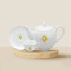 - Bộ sản phẩm bao gồm: 1 ấm, 6 chén và 6 ly lót chén trà