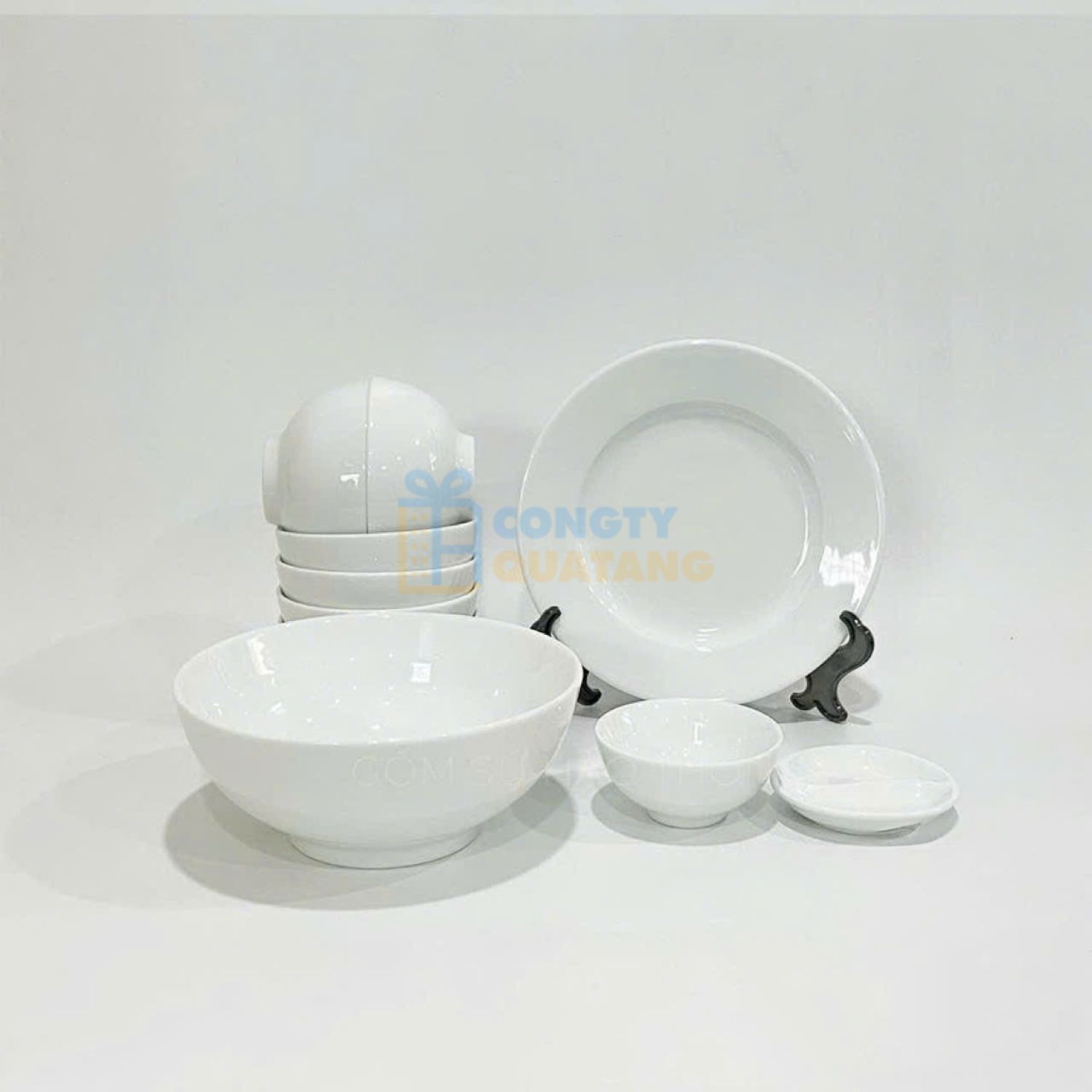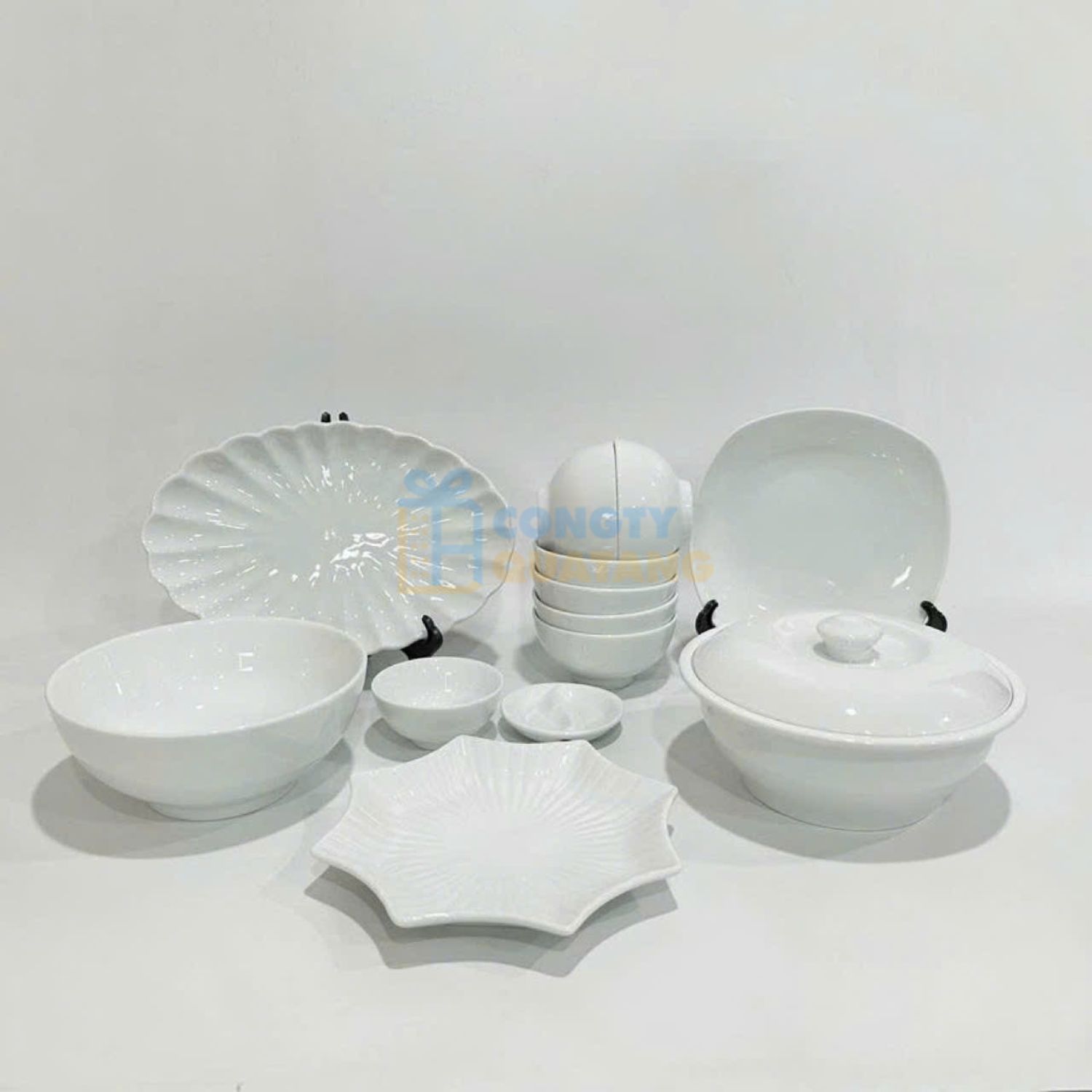 - Ngoài yếu tố thẩm mỹ, bộ đồ ăn men trắng này còn an toàn cho sức khỏe nhờ quy trình nung ở nhiệt độ cao loại bỏ tạp chất. Bộ sản phẩm đa dạng gồm nhiều loại bát, đĩa, tô… phục vụ đầy đủ nhu cầu trong bữa cơm gia đình, nhà hàng hay tiệc đãi. Đây cũng là lựa chọn quà tặng tinh tế, thể hiện sự trang nhã và thanh lịch.