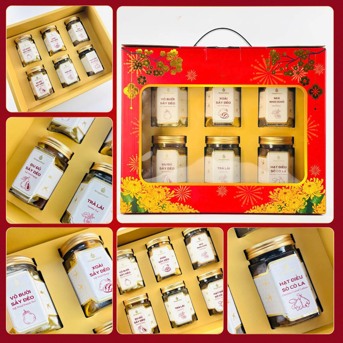 - Hộp quà sở hữu thiết kế đỏ sang trọng – biểu tượng của may mắn, mang đến cảm giác ấm áp và sum vầy trong những ngày đầu năm mới.