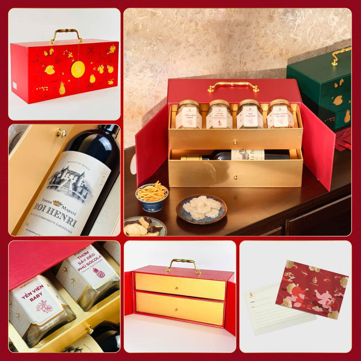 Món quà này với thiết kế sang trọng, thể hiện sự chỉn chu và trân trọng từ người tặng đến người nhận, mang đến trải nghiệm ý nghĩa và ấn tượng trong dịp Tết.