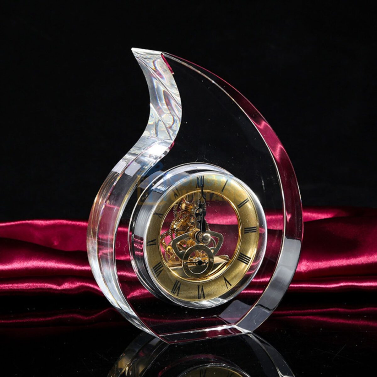 Đồng hồ để bàn pha lê DC101 sở hữu thiết kế độc đáo với hình giọt nước uốn cong mềm mại, mang lại vẻ đẹp tinh tế và hiện đại. Phần lõi máy cơ lộ thiên kết hợp chi tiết kim loại mạ vàng tạo điểm nhấn sang trọng, cuốn hút ánh nhìn. Sản phẩm thích hợp làm quà tặng cao cấp hoặc vật trang trí cho bàn làm việc, tủ kính trưng bày.
