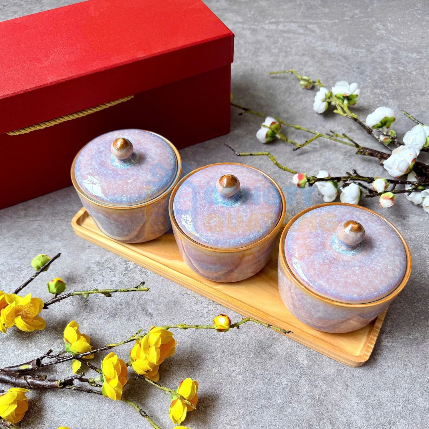 Công ty Quà tặng doanh nghiệp DTH chuyên cung cấp hủ đựng mứt Tết quà tặng cao cấp với chất lượng tốt. Khay đựng bánh kẹo Tết có đa dạng mẫu mã về kiểu dáng, màu sắc, họa tiết đến thương hiệu nổi tiếng từ Minh Long, Bát Tràng.