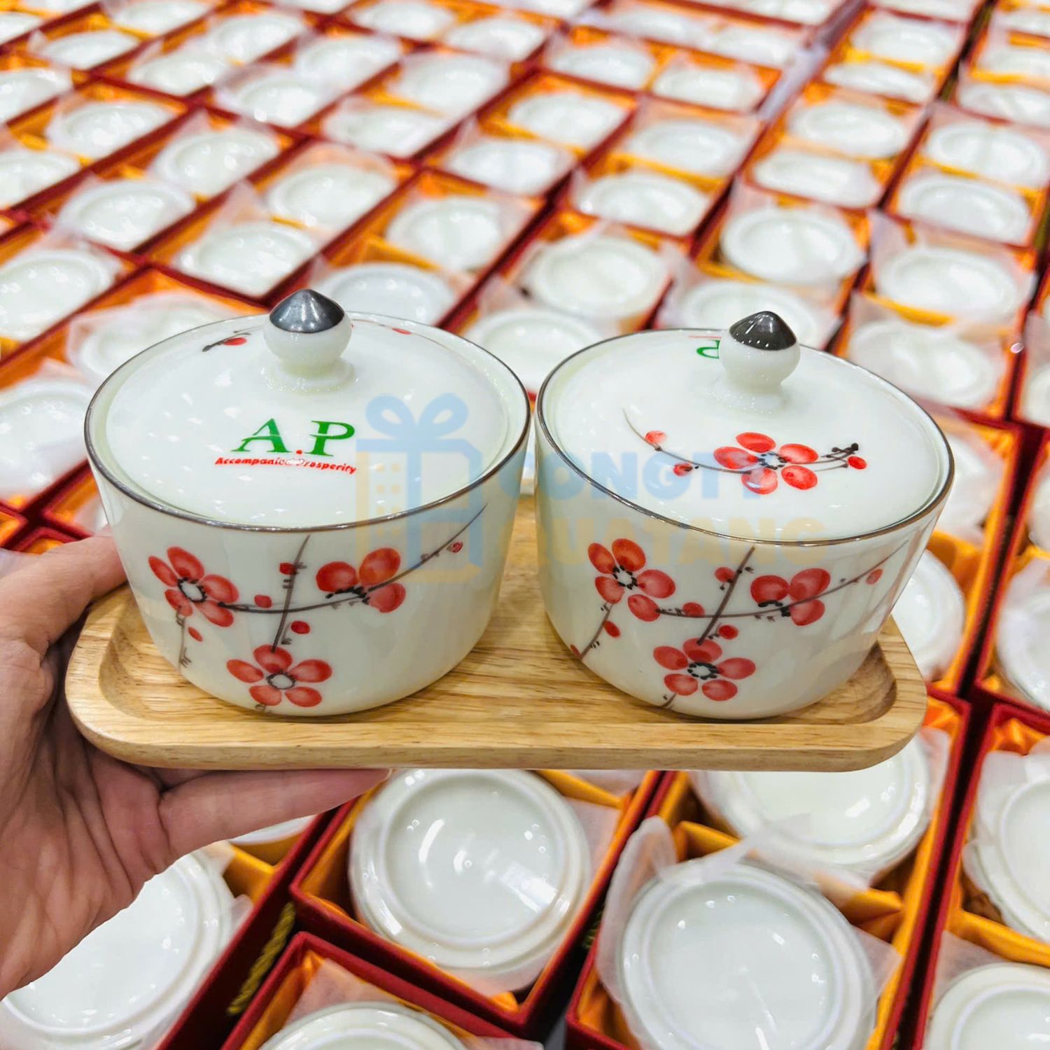 - Chất liệu: Sứ Bát Tràng, khay gỗ