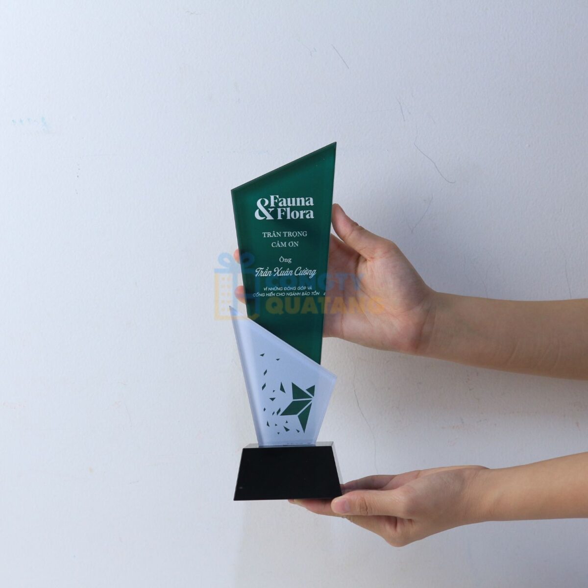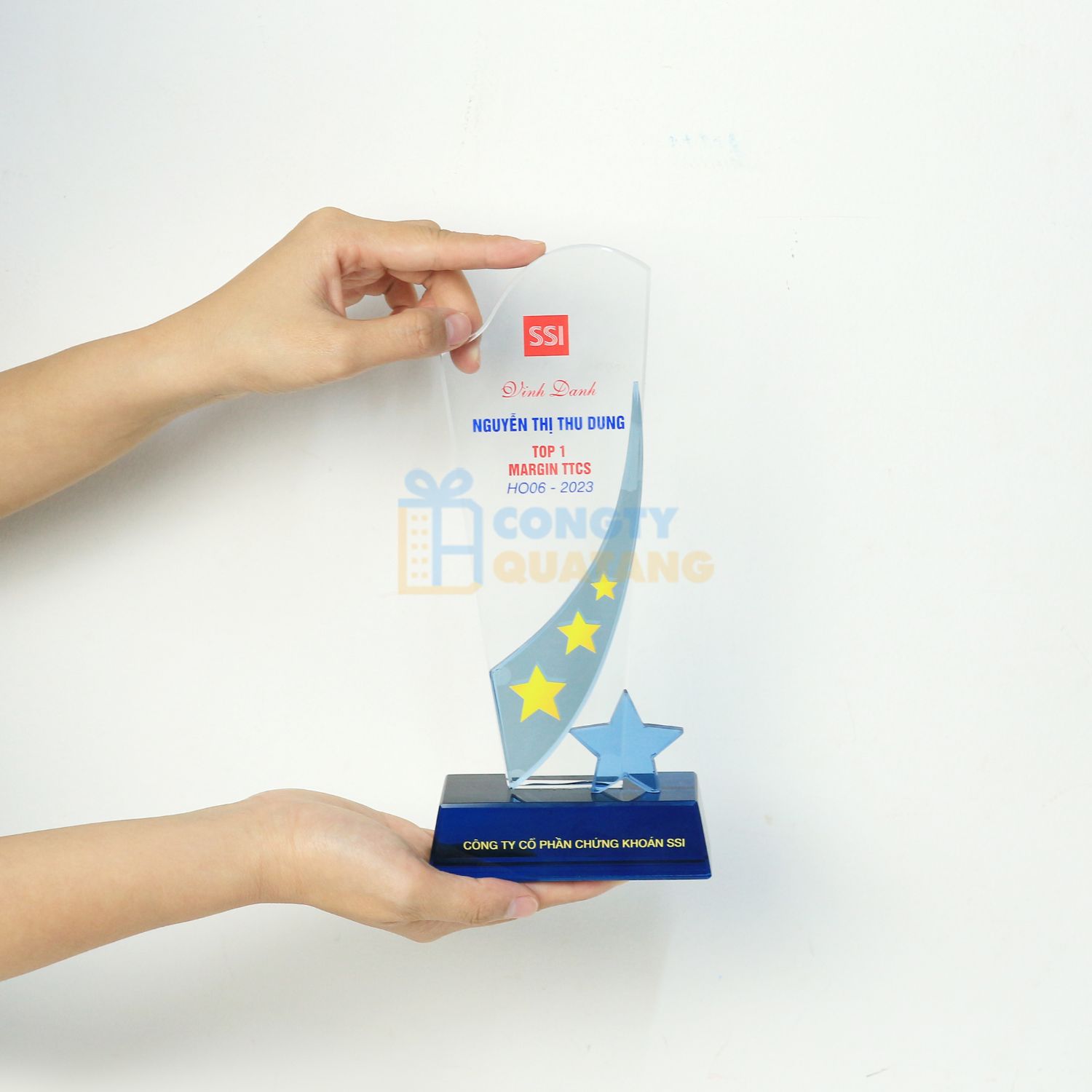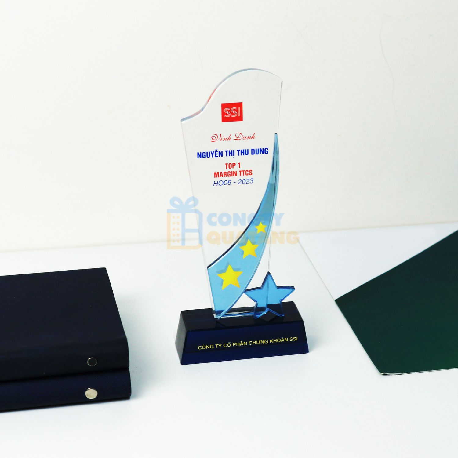 - Khắc in sắc nét: Nội dung, logo, thông điệp được khắc và in ấn rõ ràng, thể hiện sự chuyên nghiệp và trang nghiêm của buổi lễ vinh danh.