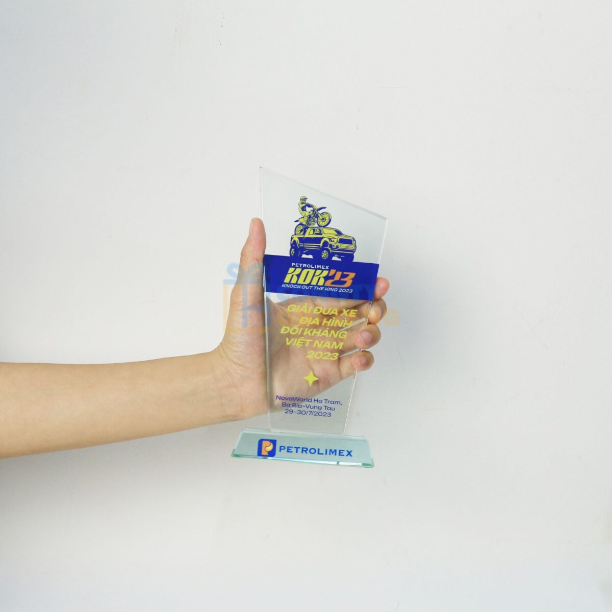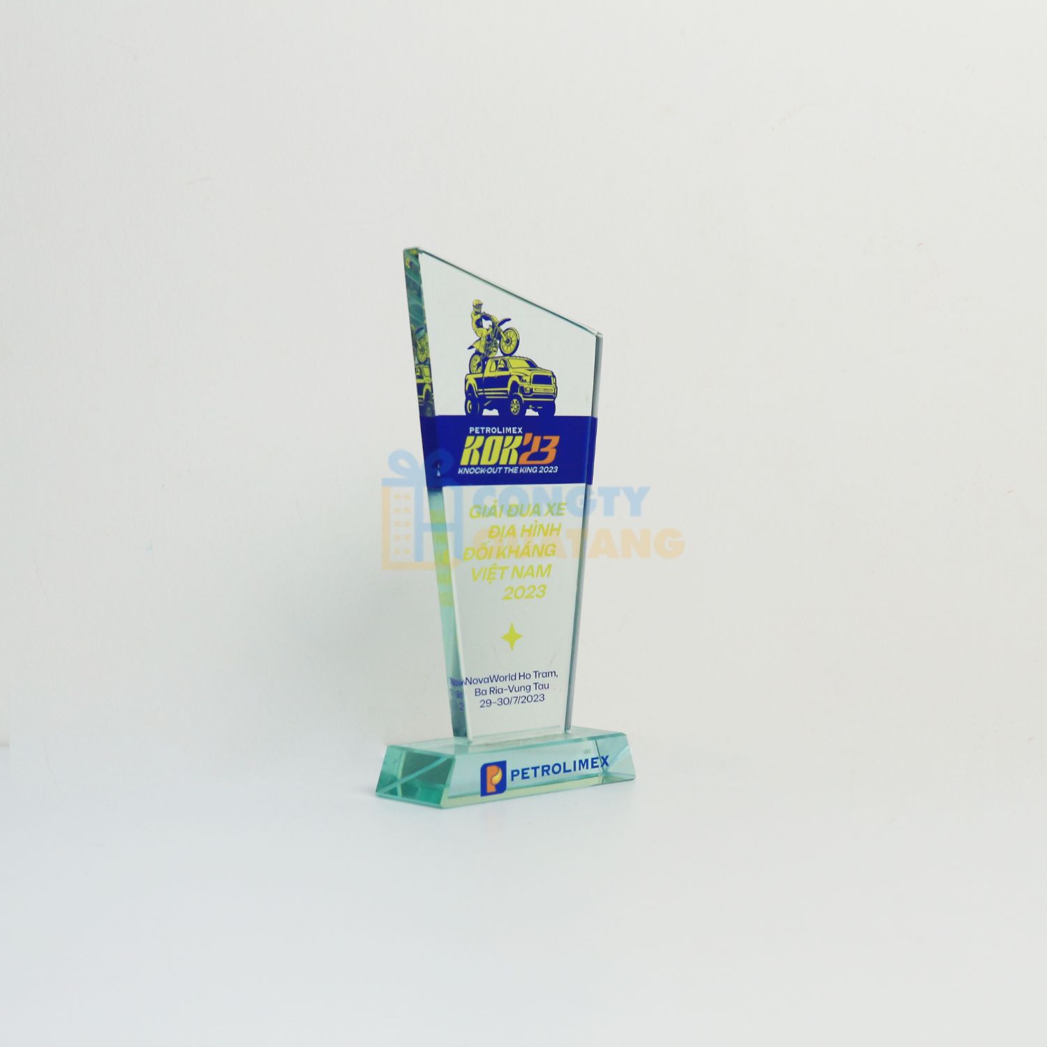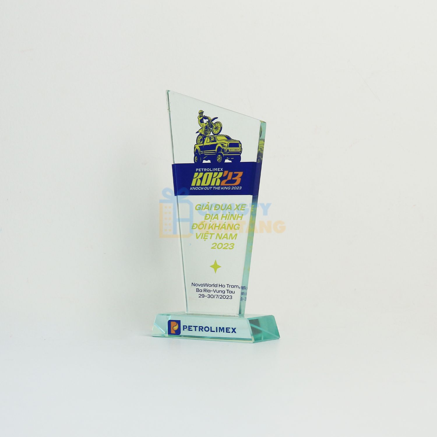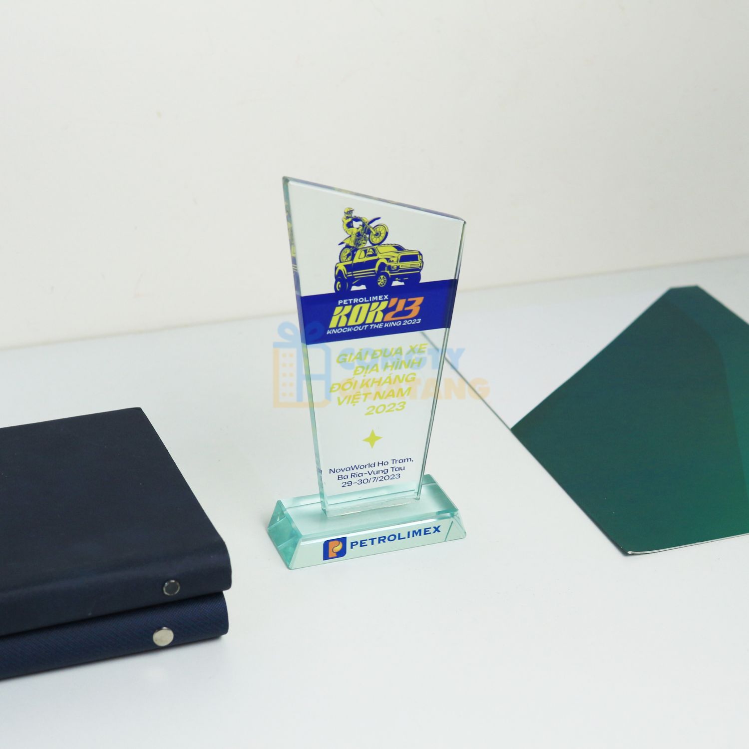 Kỷ niệm chương pha lê PL-118 được thiết kế hiện đại với dáng tháp đứng vững chắc, tạo cảm giác sang trọng và chuyên nghiệp. Chất liệu pha lê trong suốt cao cấp giúp sản phẩm nổi bật khi khắc in logo, nội dung vinh danh. Đây là lựa chọn hoàn hảo cho các sự kiện thể thao, doanh nghiệp hoặc chương trình tri ân, ghi dấu thành tích đáng nhớ.