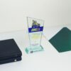 - Thiết kế tinh tế: Mẫu kỷ niệm chương pha lê PL-118 mang dáng tháp đứng hiện đại, với các đường cắt gọn gàng, tạo sự sang trọng và nổi bật trong mọi sự kiện.