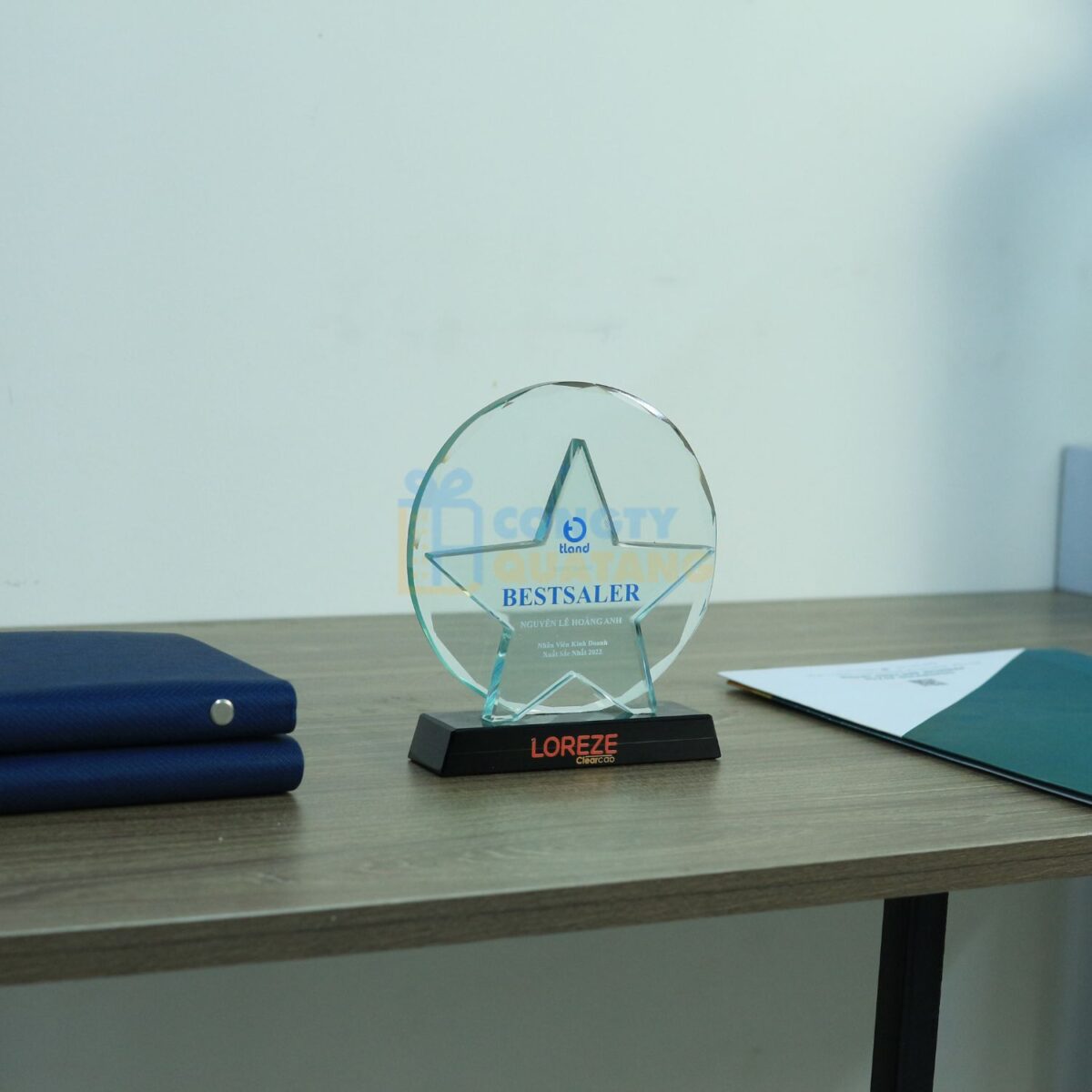 - Đế pha lê đen sang trọng: Phần đế màu đen chắc chắn giúp tổng thể kỷ niệm chương thêm phần mạnh mẽ và nổi bật, dễ dàng trưng bày ở nhiều không gian.