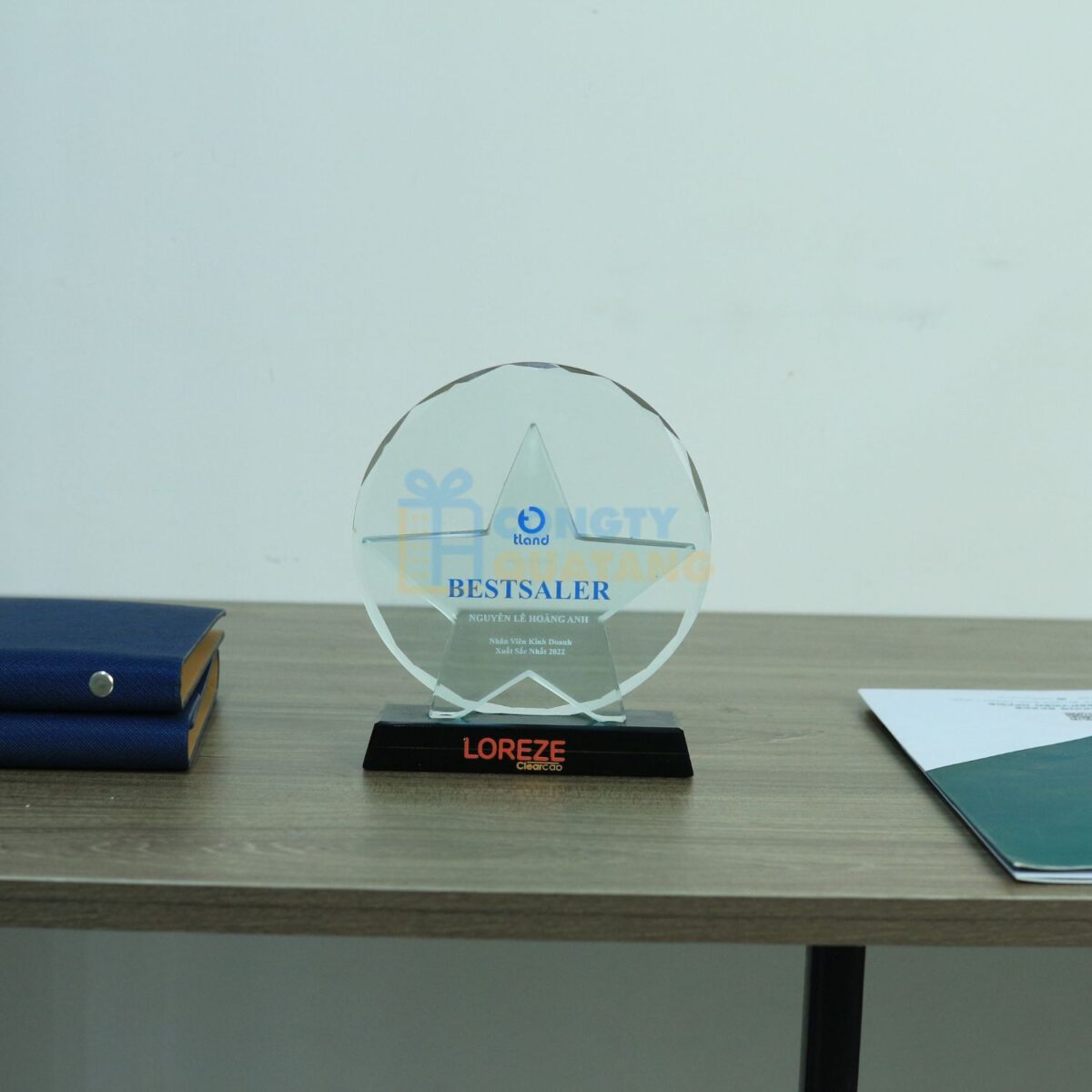 Kỷ niệm chương nhân viên xuất sắc PL-105 được thiết kế nổi bật với hình ngôi sao tượng trưng cho sự tỏa sáng và thành công. Chất liệu pha lê trong suốt kết hợp đế đen sang trọng, tạo nên vẻ đẹp hiện đại và tinh tế. Đây là lựa chọn ý nghĩa để tôn vinh, ghi nhận những đóng góp xuất sắc của nhân viên trong doanh nghiệp.