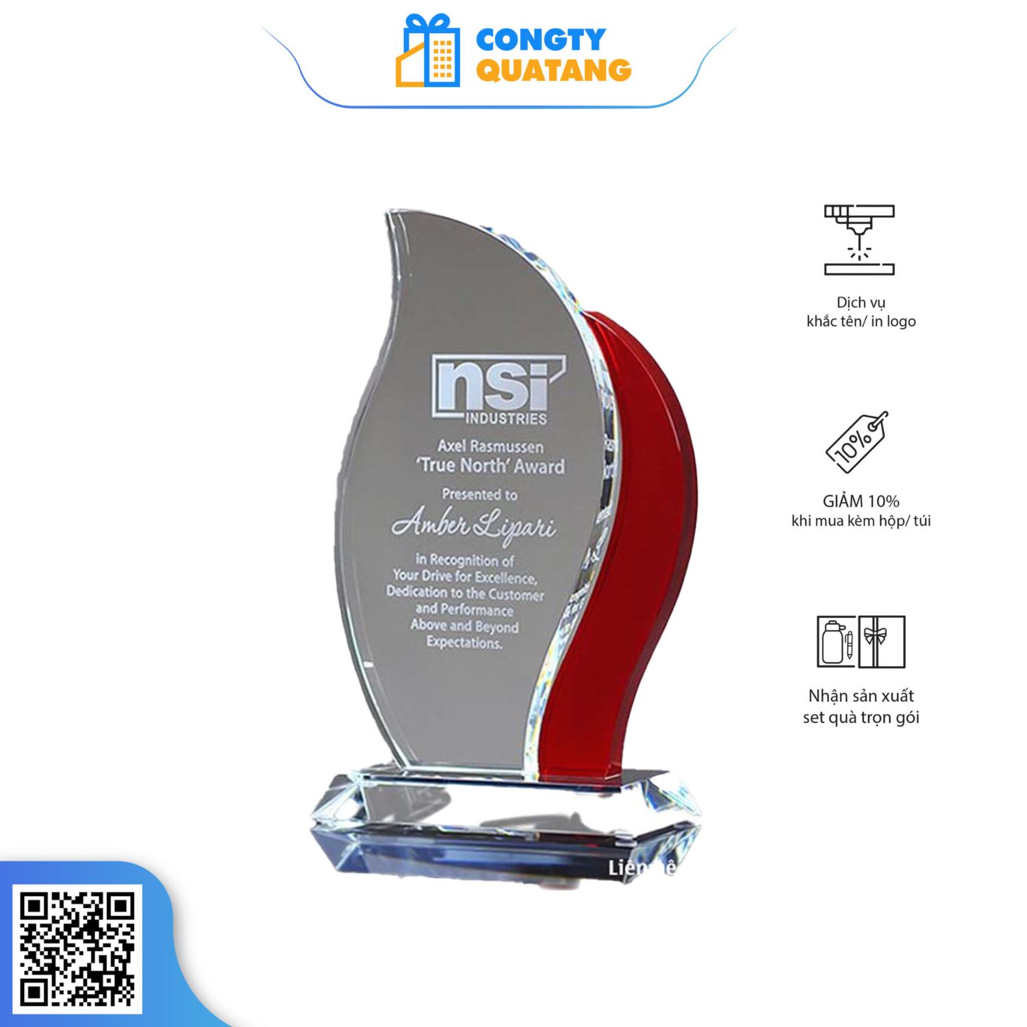 - Thiết kế độc đáo: Kỷ niệm chương pha lê PL-106 được chế tác theo hình dáng ngọn lửa cách điệu, mang ý nghĩa tượng trưng cho tinh thần nhiệt huyết, sự cống hiến và khát vọng vươn lên không ngừng.
