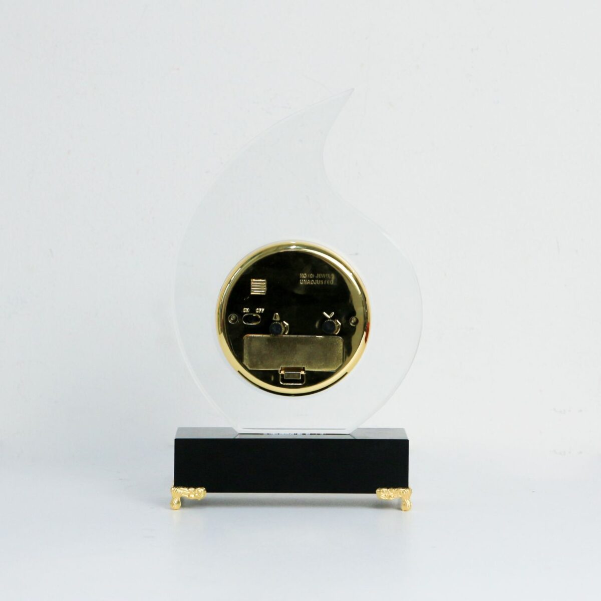 Kỷ Niệm Chương Pha Lê PL-126 được thiết kế tinh tế với hình khối ngọn lửa uốn cong độc đáo, kết hợp đồng hồ sang trọng ở trung tâm. Chất liệu pha lê trong suốt cao cấp tạo nên vẻ đẹp hiện đại, vừa là vật phẩm trang trí vừa mang ý nghĩa tri ân sâu sắc. Đây là món quà vinh danh, kỷ niệm phù hợp cho doanh nghiệp, tổ chức và cá nhân trong các dịp đặc biệt.