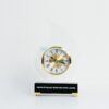 - Tích hợp đồng hồ: Điểm nhấn nổi bật của mẫu kỷ niệm chương này chính là đồng hồ viền mạ vàng tinh xảo ở trung tâm, vừa mang tính trang trí vừa có giá trị sử dụng thực tế.
