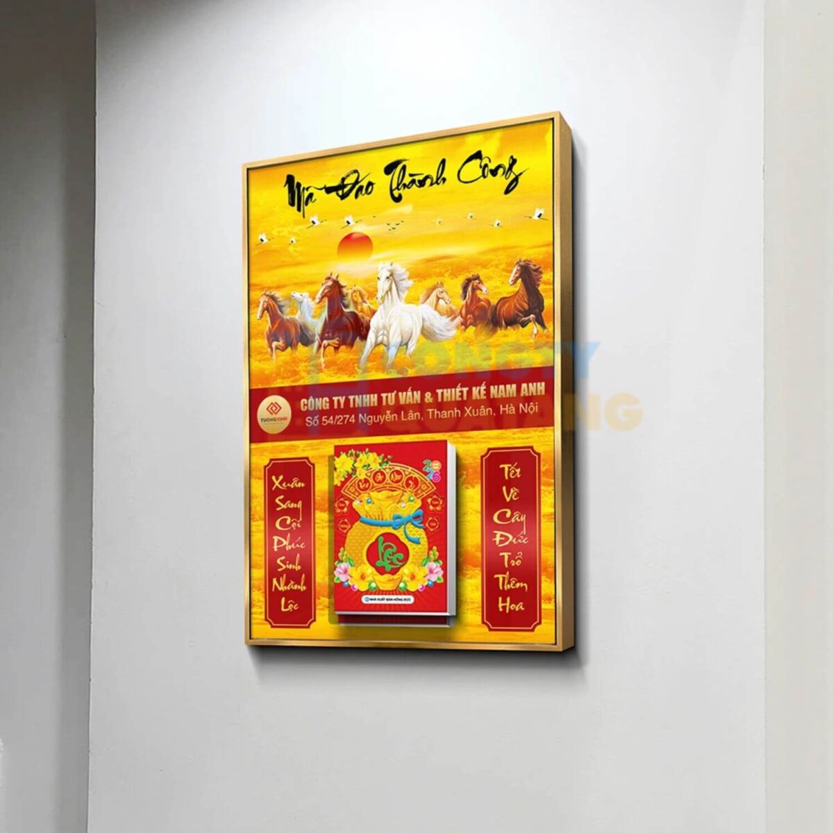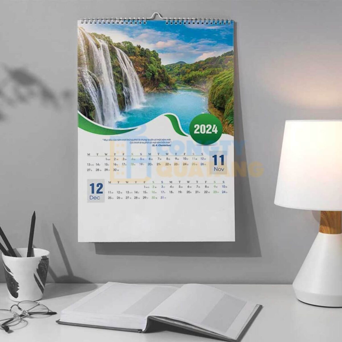 Lịch treo tường có thiết kế đa dạng như lịch 1 tờ, lịch 5 tờ, 7 tờ hoặc 13 tờ, phù hợp treo tại văn phòng, cửa hàng, nhà ở. Ưu điểm của lịch treo tường là diện tích hiển thị lớn, dễ dàng in logo, hình ảnh thương hiệu và thông điệp quảng bá. Loại lịch này có mức chi phí hợp lý, dễ tùy chỉnh thiết kế theo nhận diện doanh nghiệp, thích hợp làm quà tặng khách hàng, đối tác và nhân viên vào dịp Tết.