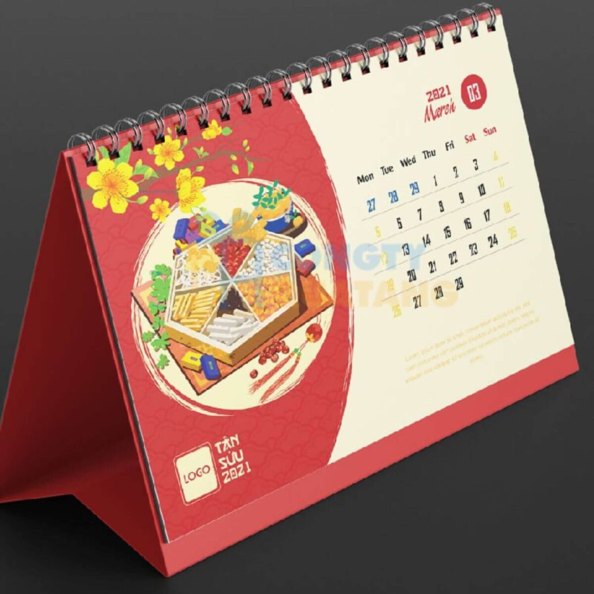 Lịch Tết có thể in logo, tên doanh nghiệp, thông điệp riêng hoặc hình ảnh sản phẩm đặc trưng. Với nhiều loại lịch: treo tường, để bàn, bloc…, doanh nghiệp dễ dàng lựa chọn theo nhu cầu, không gian và ngân sách.