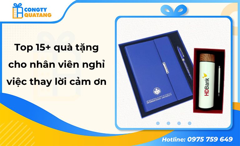 Công ty Quà tặng DTH mang đến nhiều lựa chọn quà tặng như: bình giữ nhiệt, bút ký, sổ tay, bộ ấm chén, lịch để bàn, đồng hồ treo tường hay set quà riêng theo thiết kế. Doanh nghiệp có thể in/khắc logo, làm hộp quà theo yêu cầu, giúp doanh nghiệp vừa gửi lời cảm ơn chân thành và thể hiện sự chuyên nghiệp trong mắt nhân viên. Liên hệ hotline: 0975.759.649 để được tư vấn nhanh chóng và chọn món quà phù hợp nhất cho nhân viên nghỉ việc.
