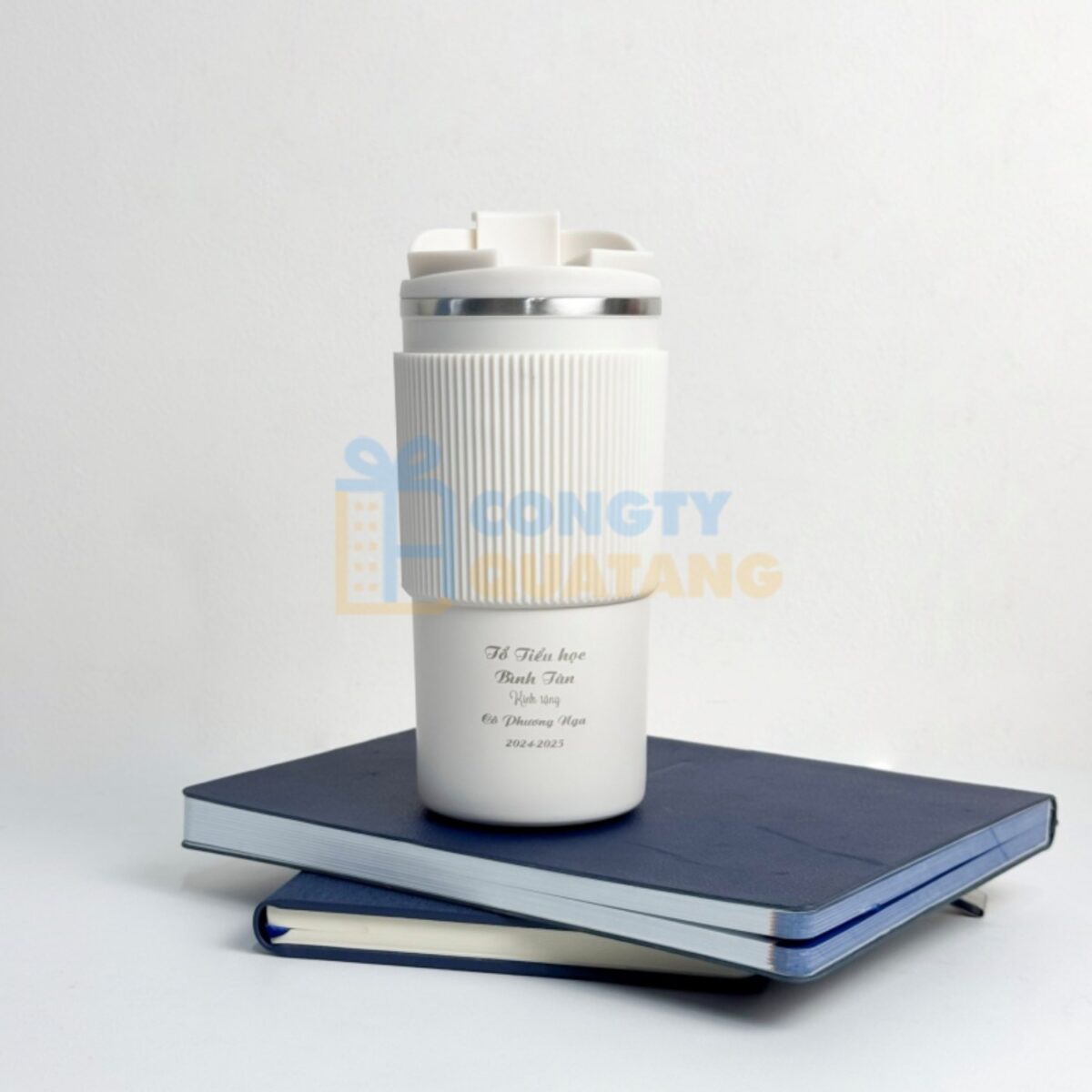 Tương tự bình giữ nhiệt, ly giữ nhiệt khắc tên cũng là lựa chọn tuyệt vời cho quà tặng cá nhân hoặc văn phòng nhờ sự nhỏ gọn và tiện dụng. Khắc tên hoặc biệt danh lên ly không chỉ mang lại cảm giác gắn bó mà còn là dấu ấn riêng, giúp người nhận cảm thấy được trân trọng và đặc biệt.