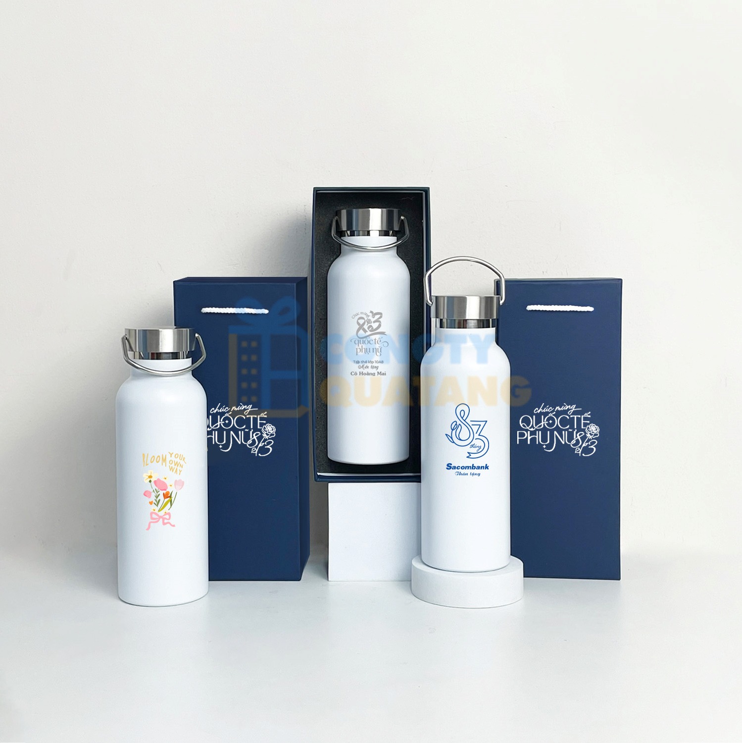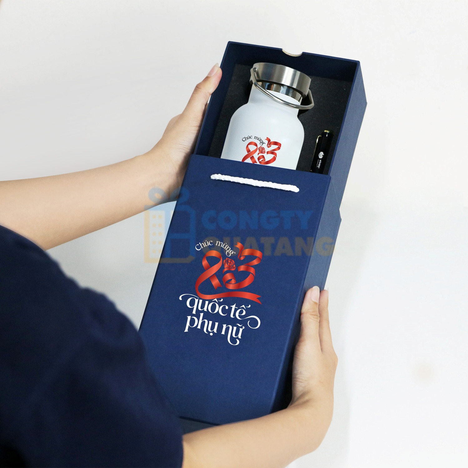 Set Quà Tặng 8/3 Bình Giữ Nhiệt Q128, Bút Kim Loại, Hộp Cao Cấp SQT2028