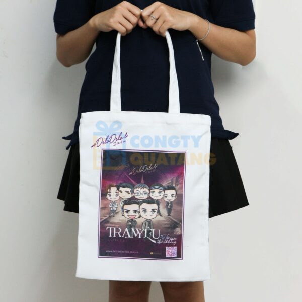 Giá in túi vải từ 20.000đ/sản phẩm. Chi phí được tính dựa vào chất liệu vải (canvas, vải đay, không dệt), số lượng, kích thước, số màu in ấn, phụ kiện đi kèm.