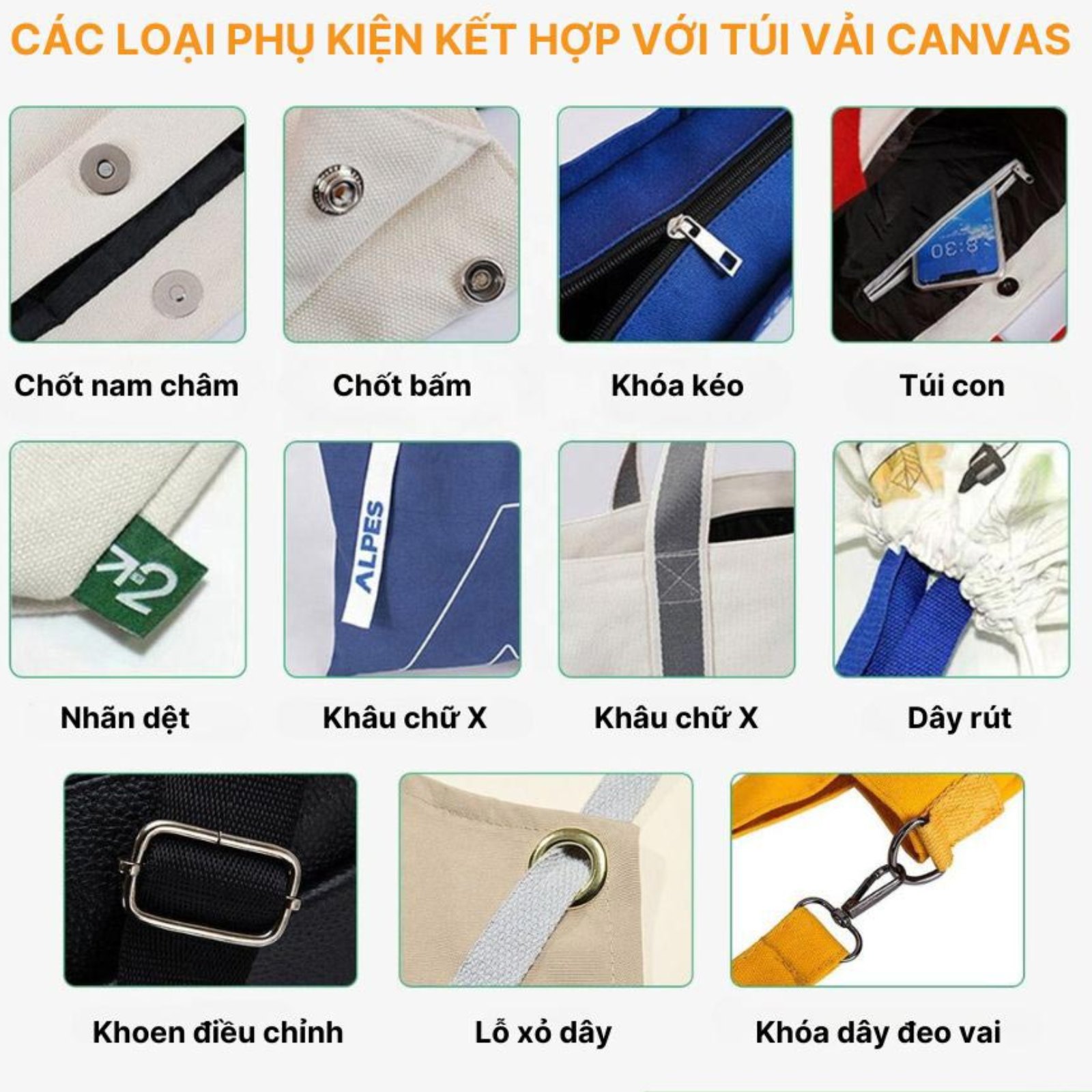 Phụ kiện kết hợp cùng túi vải