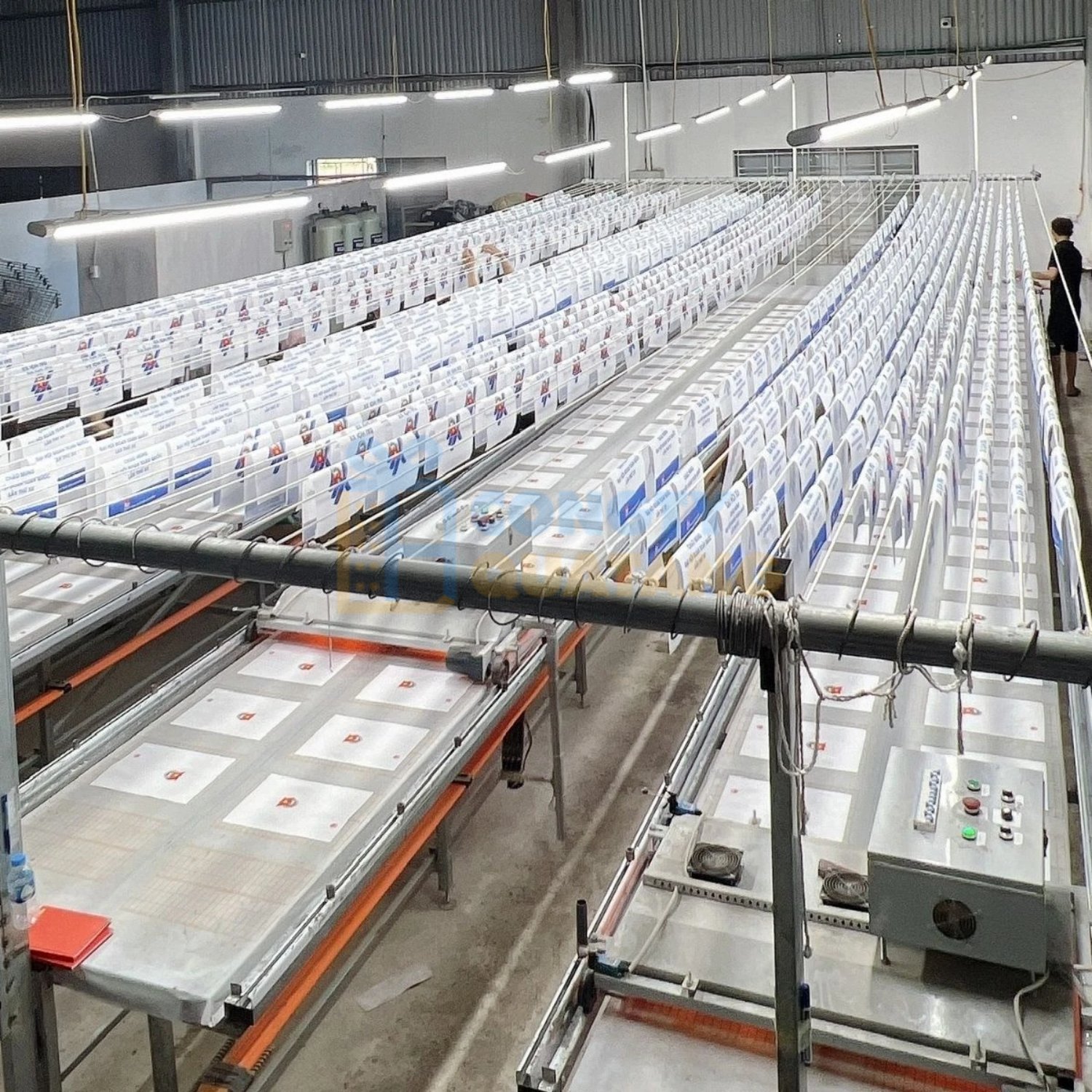 Đặc biệt, với quy mô xưởng 2.000m², năng lực đáp ứng đến 1.200 sản phẩm mỗi ngày, đảm bảo tiến độ cho các đơn hàng số lượng lớn, luôn có sự chủ động và linh hoạt trong mọi khâu từ in ấn đến giao hàng.
